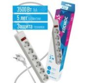 Фильтр сетевой Космос 6гн 3м 16А 3500Вт с/з выкл. (ПВС 3*1) белый